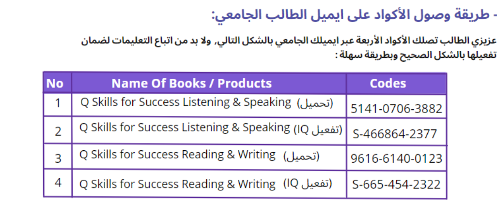 ولتفعيل الاكواد بالطريقة الصحيحة نوصي باتباع الدليل الارشادي للطالب خطوة بخطوة بالضغط هنا.